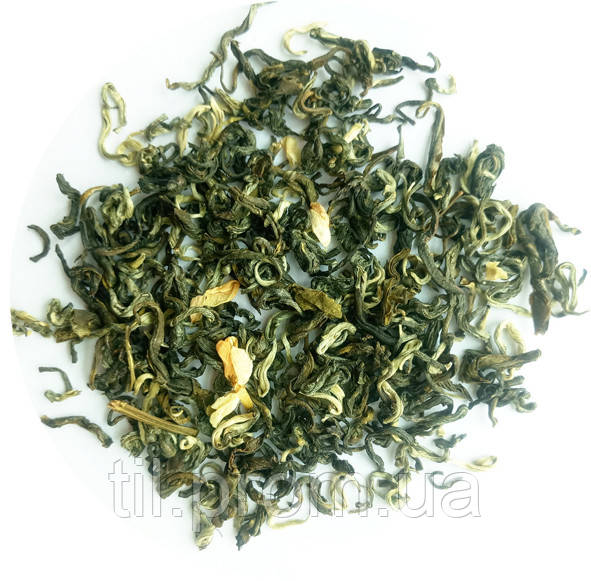Популярний китайський зелений чай із жасмином. Скручене листя та молоді бруньки з додаванням пелюсток жасмину дарують прозорий ароматний настій з насиченим освіжаючим смаком та приємними нотами жасмину.